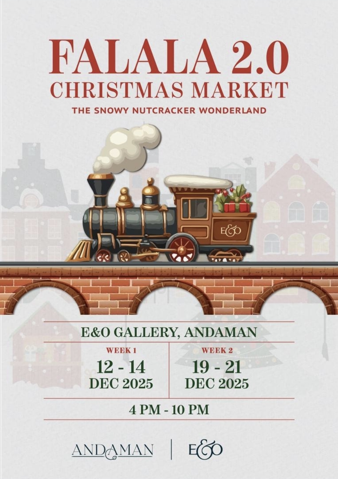 Selepas kejayaan besar FaLaLa 1.0 tahun lalu, Eastern & Oriental Berhad (E&O) kini membawa kembali suasana perayaan yang lebih memukau menerusi FaLaLa 2.0, acara Krismas bertemakan Snowy Nutcracker Wonderland yang berlangsung pada 12 hingga 14 Disember dan 19 hingga 21 Disember 2025, dari 4 petang hingga 11 malam di E&O Gallery, Andaman Island.