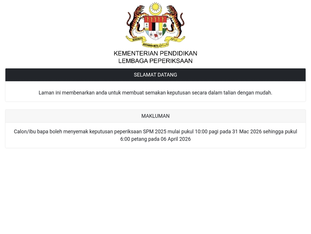 • Di Sekolah: Calon boleh hadir ke sekolah masing-masing bermula jam 10 pagi untuk mendapatkan slip keputusan rasmi.